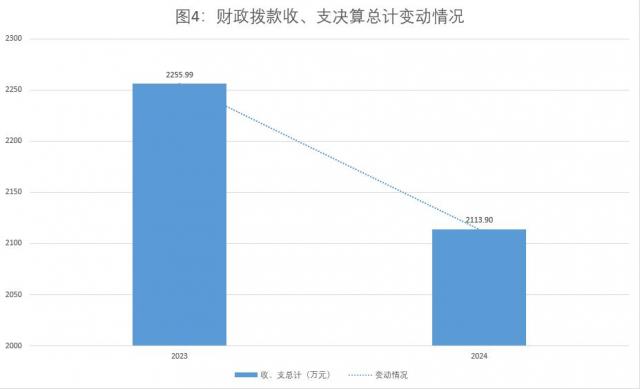 2024年度财政拨款收入、支出总计均为2113.90万元。与2023年度相比,财政拨款收入总计、支出总计各减少142.09万元,下降6.30%。主要变动原因是教师数减少,学生数减少。