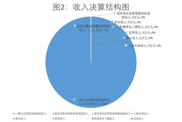 2024年度本年收入合计2113.90万元,其中:一般公共预算财政拨款收入2112.40万元,占99.93%;政府性基金预算财政拨款收入1.5万元,占0.07%;国有资本经营预算财政拨款收入0万元,占0%;上级补助收入0万元,占0%;事业收入0万元,占0%;经营收入0万元,占0%;附属单位上缴收入0万元,占0%;其他收入0万元,占0%。