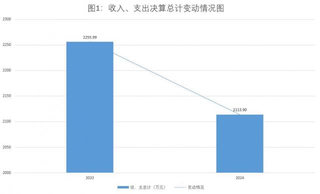 2024年度收入、支出总计均为2113.90万元。与2023年度相比,收入、支出总计各减少142.09万元,下降6.30%。主要变动原因是教师数减少,学生数减少。