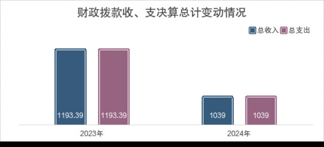 2024年度财政拨款收、支总计均为1039万元。与2023年度相比,财政拨款收、支总计各减少154.39万元,下降12.9%。主要变动原因是2024年项目支出减少。