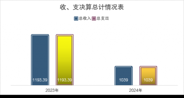2024年度收、支总计均为1039万元。与2023年度相比,收、支总计各减少154.39万元,下降12.9%。主要变动原因是2024年项目支出减少。