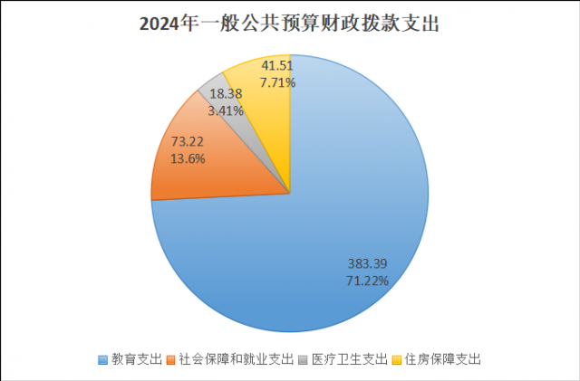 2024年一般公共预算财政拨款支出538.33万元,主要用于以下方面:一般公共服务支出0万元,占0%;教育支出383.39万元,占71.22%;科学技术支出0万元,占0%;文化旅游体育与传媒支出0万元,占0%;社会保障和就业支出73.22万元,占13.6%;卫生健康支出18.38万元,占3.41%;住房保障支出41.51万元,占7.71%。(注:数据来源于财决01-1表,仅罗列本单位涉及的全部功能分类科目,至类级。)
