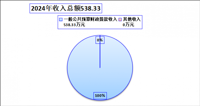 2024年本年收入合计538.33万元,其中:一般公共预算财政拨款收入538.33万元,占100%;政府性基金预算财政拨款收入0万元,占0%;国有资本经营预算财政拨款收入0万元,占0%;上级补助收入0万元,占0%;事业收入0万元,占0%;经营收入0万元,占0%;附属单位上缴收入0万元,占0%;其他收0万元,占0%。(注:数据来源于财决01表,仅罗列本单位涉及的收入。)