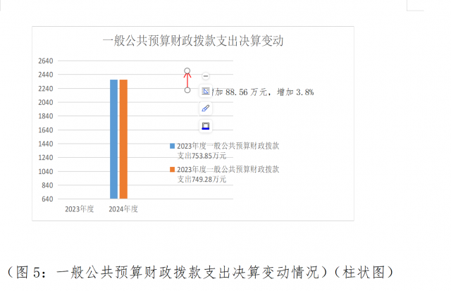 2024年度一般公共预算财政拨款支出2367.82万元,占本年支出合计的100%。与2023年度相比,一般公共预算财政拨款支出增加106.46万元,增长4.7%。主要变动原因是政府加入对教育经费的投入。