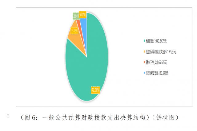 2024年度一般公共预算财政拨款支出2367.82万元,主要用于以下方面:教育支出1940.84万元,占82%;社会保障和就业支出221.85万元,占9.3%;卫生健康支出65.6万元,占2.8%;住房保障支出139.50万元,占5.9%。