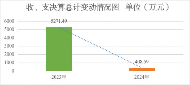 2024年度收入、支出总计均为408.59万元。与2023年度相比,收入、支出总计各减少了4862.9万元,下降92.2%。主要变动原因是数字经济产业支出已完全转移到宣汉县数字经济产业发展中心。