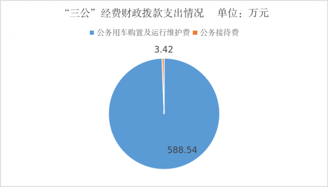 2024年度“三公”经费财政拨款支出决算中,因公出国(境)费支出决算0万元,占0%;公务用车购置及运行维护费支出决算588.54万元,占99.42%;公务接待费支出决算3.42万元,占0.58%。具体情况如下: