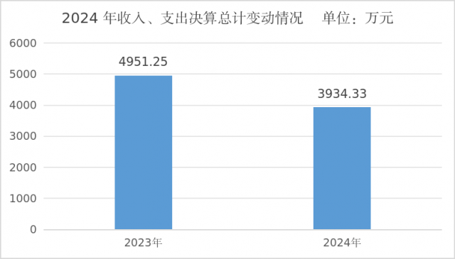 2024年度收入、支出总计均为3934.33万元。与2023年度相比,收入、支出总计各减少1016.92万元,下降20.54%。主要变动原因是部门及下属单位厉行节约,缩减经费。