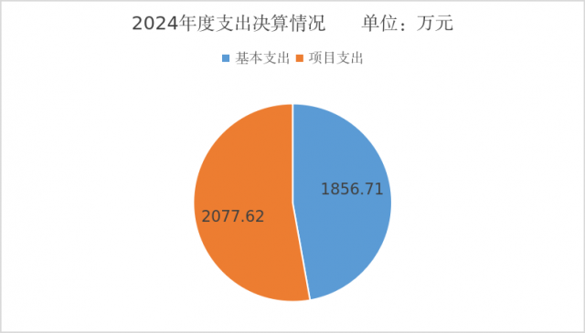 2024年度本年支出合计3934.33万元,其中:基本支出1856.71万元,占47.19%;项目支出2077.62万元,占52.81%。