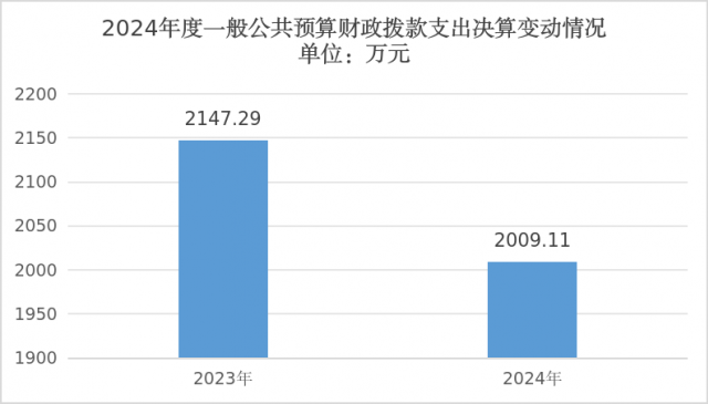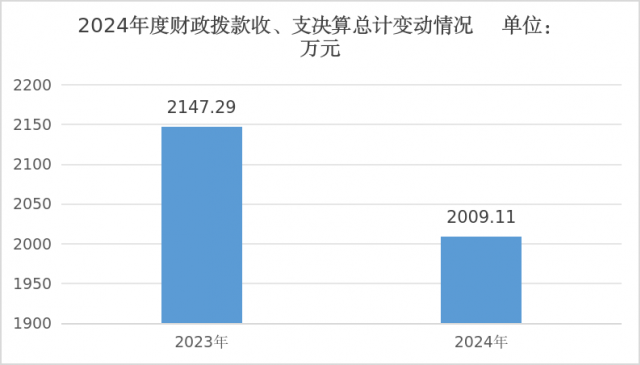 2024年度财政拨款收入、支出总计均为2009.11万元。与2023年度相比,财政拨款收入总计、支出总计各减少138.18万元,下降6.44%。主要变动原因是厉行节约,缩减经费。