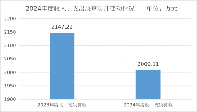 2024年度收入、支出总计均为2009.11万元。与2023年度相比,收入、支出总计各减少138.18万元,下降6.44%。主要变动原因是厉行节约,缩减经费。