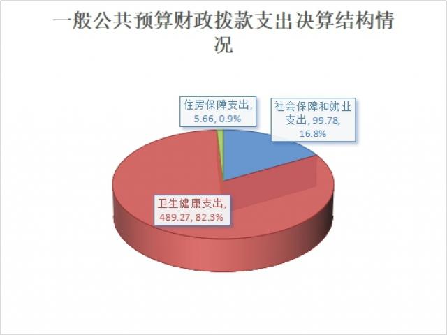 2024年度一般公共预算财政拨款支出594.71万元,主要用于以下方面:社会保障和就业支出99.78万元,占16.8%;卫生健康支出489.27万元,占82.3%,住房保障支出5.66万元,占0.9%。