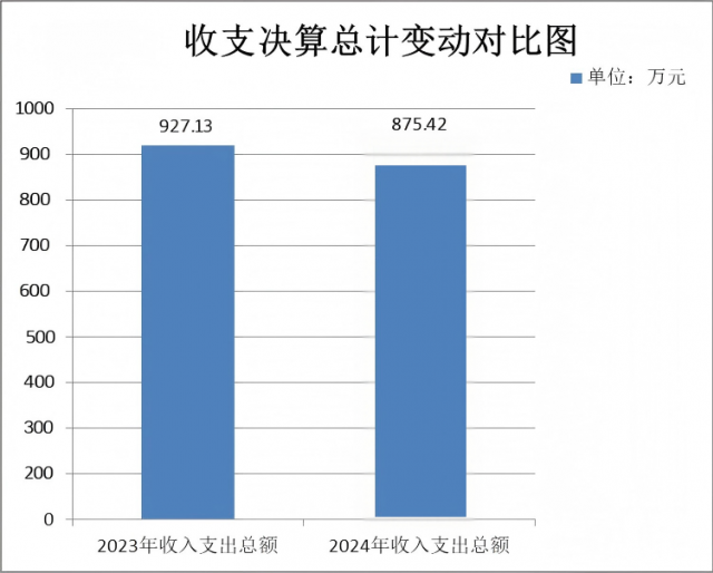 2024年度收入、支出总计均为875.42万元。与2023年度相比,收入、支出总计减少51.89万元,下降5.9%。主要变动原因是教师和学生人数减少导致人员经费支出相应减少。