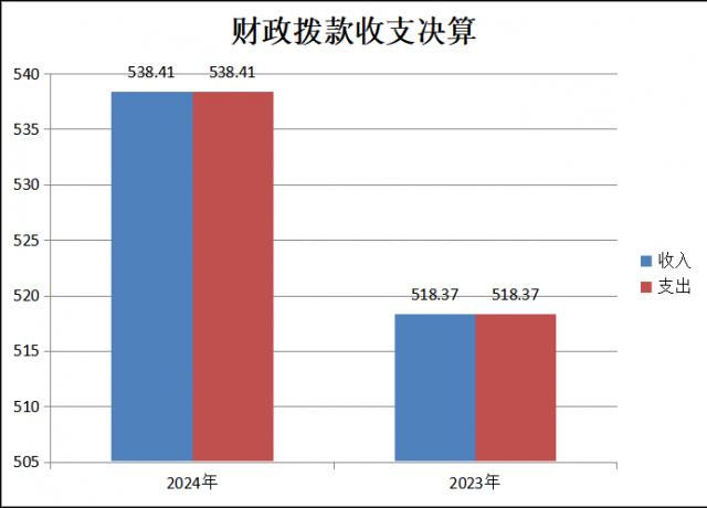 2024年度财政拨款收、支总计均为538.41万元。与2023年度相比,财政拨款收、支总计各增加20.04万元,上升3.72%。主要变动原因是2024年财政拨款增加。