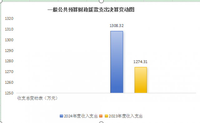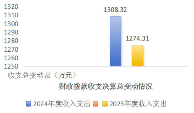 2024年度财政拨款收入、支出总计均为1308.32万元。与2023年度相比,财政拨款收入总计、支出总计各增加34.1万元,增长2.6%。主要变动原因是人员经费增加。