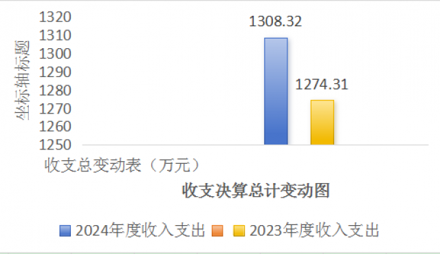 2024年度收入、支出总计均为1308.32万元。与2023年度相比,收入、支出总计各增加34.1万元,增长2.6%。主要变动原因是人员经费增加