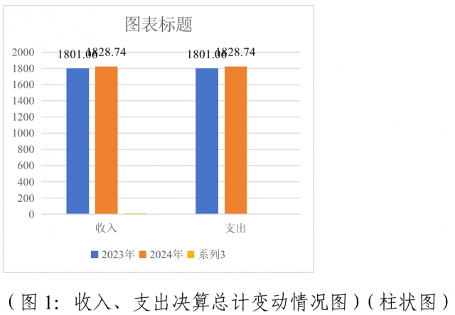 2024年度收入、支出总计均为1828.74万元。与2023年度相比,收入、支出总计各增加27.68万元,增长1.5%。主要变动原因是人员经费增加
