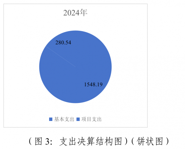 2024年度本年支出合计1827.74万元,其中:基本支出1548.19万元,占84.7%;项目支出280.54万元,占15.3%;(注:仅罗列本部门涉及的支出)