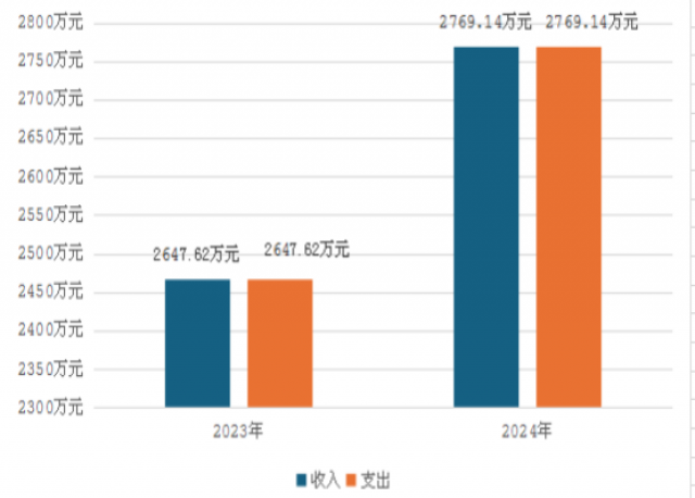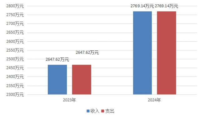 2024年度收、支总计均为2769.14万元。与2023年度相比,收、支总计各增加121.52万元,增加4.59%。主要变动原因是2024年比2023年项目投入增加。