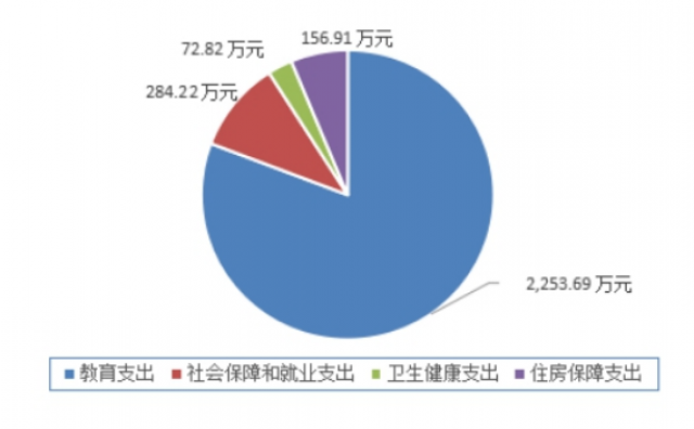 2024年度一般公共预算财政拨款支出2767.64万元,主要用于以下方面:一般公共服务支出0万元,占0%;教育支出2253.69万元,占81.43%;科学技术支出0万元,占0%;文化旅游体育与传媒支出0万元,占0%;社会保障和就业支出284.22万元,占10.27%;卫生健康支出72.82万元,占2.63%;住房保障支出156.91万元,占5.67%。