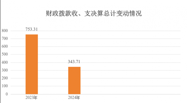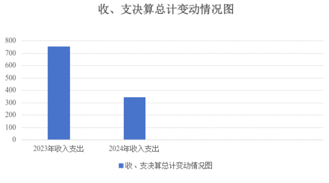 2024年度收入、支出总计均为343.71万元。与2023年度相比,收入、支出总计各减少409.6万元,下降54.73%。主要变动原因是本年度未下达项目资金。