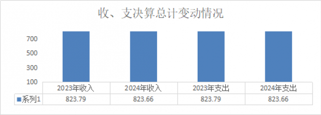 2024年度收入、支出总计均为823.66万元。与2023年度相比,收入、支出总计各减少0.13万元,下降0.02%。主要变动原因是财政拨款收入减少。