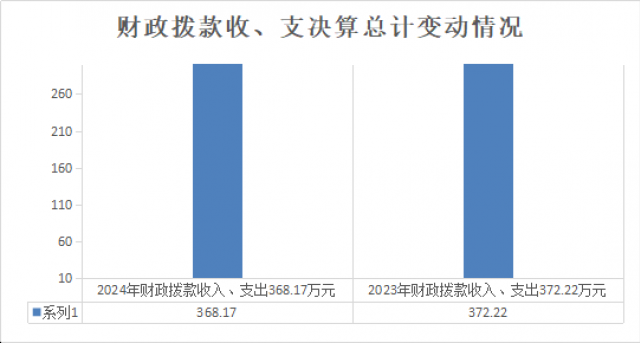 2024年度财政拨款收入、支出总计均为368.17万元。与2023年度相比,财政拨款收入总计、支出总计各减少4.05万元,下降1%。主要变动原因是财政拨款公共卫生收入减少。