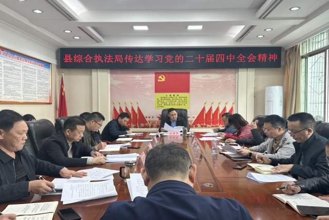 11月4日下午,县综合执法局召开专题会议,传达学习党的二十届四中全会精神。全体中层及以上干部30余人参加了集中学习会。