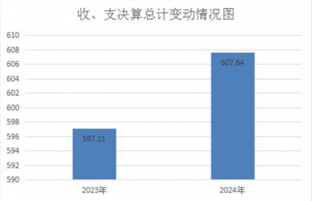 2024年度收入、支出总计均为607.64万元。与2023年相比,收入、支出总计各增加10.53万元,增长1.76%。要变动原因是:一是每年度职工工资正常调增及调整公积金、机关事业单位养老保险缴费、医疗费用等费用基数,由此带来相关费用增加;二是2024年9月新招录1人。