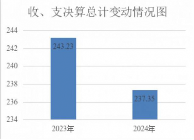 2024年度收入、支出总计为237.35万元。与2023年度相比收入、支出总计减少5.88万元,下降2.48%。主要变动原因是在职人员减少一人。