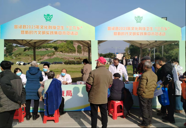 11月27日下午,宣汉县卫生健康局组织县总医院人民医院、县总医院中医医院、县总医院第三医院、县总医院残疾人康复医院和中医药发展服务中心在普光气田科技展览馆参加2025年文化科技卫生“三下乡”集中服务活动。