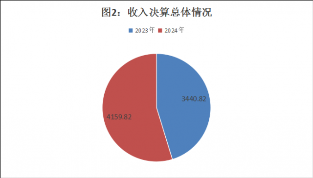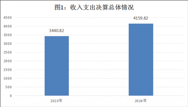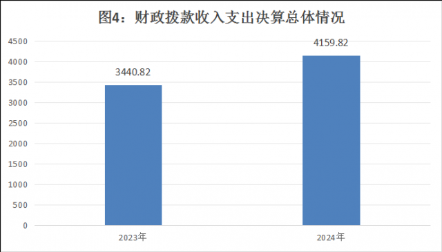 2024年度收、支总计4159.82万元。与2023(3440.82)年相比,收、支总计各增加759.00万元,增长18.25%。主要变动原因是一般公共预算财政拨款增加。