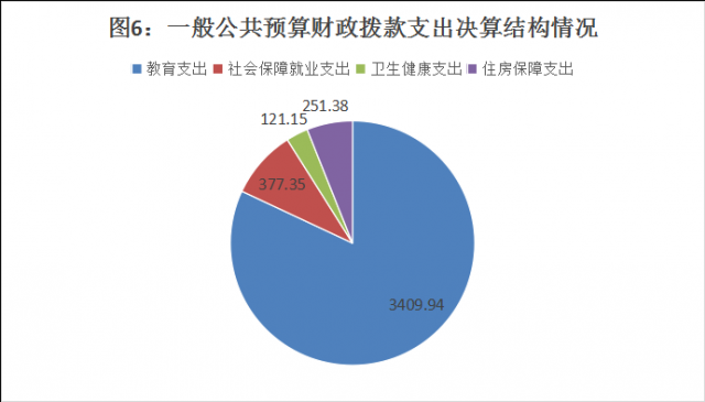 2024年一般公共预算财政拨款支出4159.82万元,主要用于以下方面:教育支出3409.94万元,占81.97%;社会保障和就业支出377.35万元,占9.07%;卫生健康支出121.15万元,占2.91%;住房保障支出251.38万元,占6.04%。