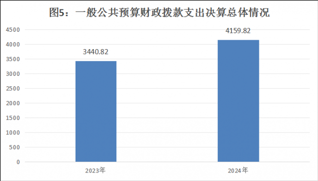 2024年一般公共预算支出决算数为4159.82万元,完成预算100%。其中: