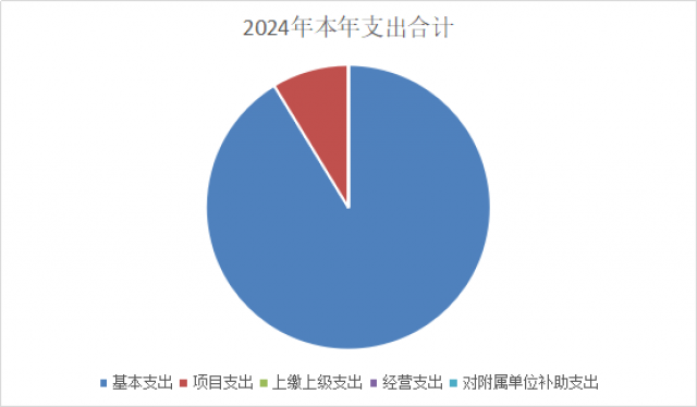 2024年本年支出合计344.12万元,其中:基本支出314.17万元,占91.3%;项目支出29.95万元,占8.7%;上缴上级支出0万元,占0%;经营支出0万元,占0%;对附属单位补助支出0万元,占0%。