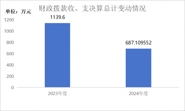 2024年度财政拨款收、支总计均为687.109552万元。较2023年减少452.489837万元,减少39.71%。主要变动原因是因为本年度本园在职人员减少,幼儿人数减少,财政下达预算减少,因此我园收支的公用经费、项目支出、本年人员经费也有所减少。
