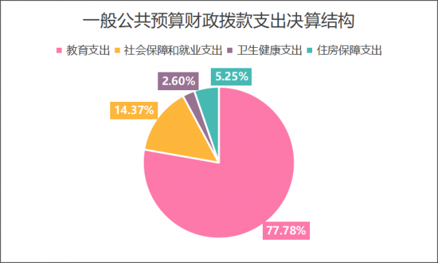 2024年度一般公共预算财政拨款支出687.109552万元,主要用于以下方面:一般公共服务支出0万元,占0%;教育支出534.432154万元,占77.78 %;科学技术支出0万元,占0%;文化旅游体育与传媒支出0万元,占0%;社会保障和就业支出98.7648元,占14.37%;卫生健康支出17.859498万元,占2.60%;住房保障支出36.0531万元,占5.25%。
