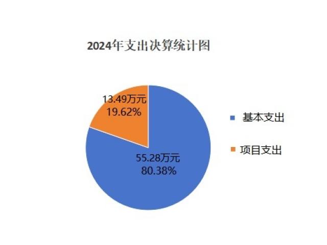 2024年度本年支出合计68.77万元,其中:基本支出55.28万元,占80.38%;项目支出13.49万元,占19.62%。