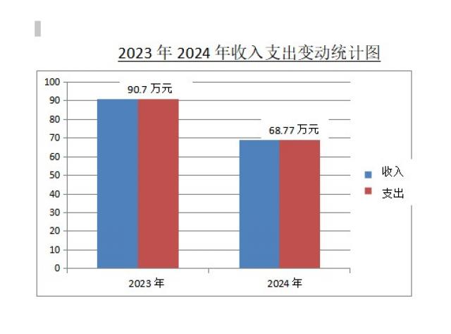 2024年度收、支总计均为68.77万元。与2023年度相比,收、支总计各减少21.93万元,减少24.18%。主要变动原因是减少了学生特长教育培训费。