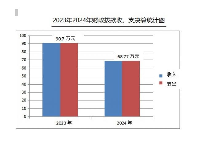 2024年度财政拨款收、支总计均为68.77万元。与2023年度相比,财政拨款收、支总计各减少21.93万元,减少24.18%。主要变动原因是减少了学生特长教育培训费。