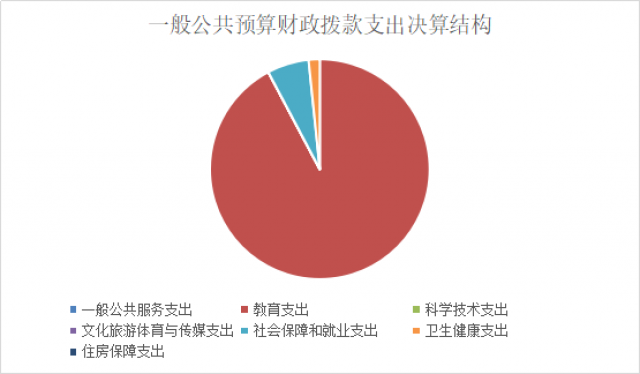 2024年度一般公共预算财政拨款支出804.96万元,主要用于以下方面:一般公共服务支出0万元,占0%;教育支出717.69万元,占89.16%;科学技术支出0万元,占0%;文化旅游体育与传媒支出0万元,占0%;社会保障和就业支出47.68万元,占5.92%;卫生健康支出12.69万元,占1.58%;住房保障支出26.90万元,占3.34%。