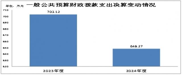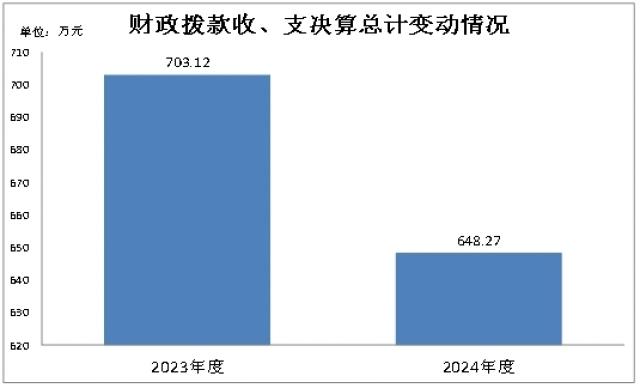 2024年度财政拨款收入、支出总计均为648.27万元。与2023年度相比,财政拨款收入总计、支出总计减少54.85万元,下降7.8%。主要变动原因是人员减少。