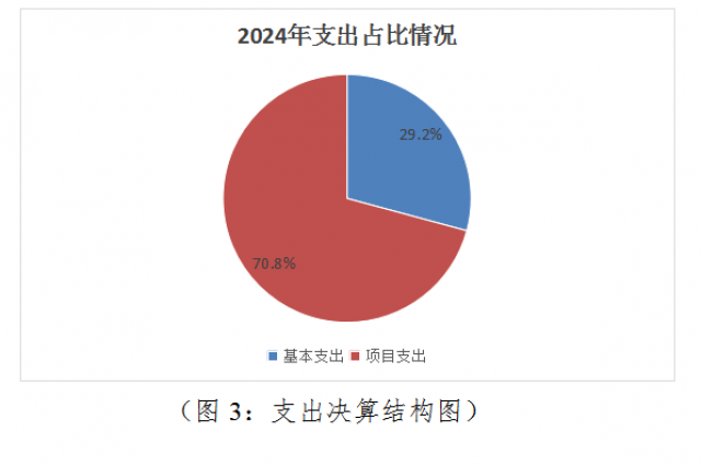 2024年度本年支出合计7084.71万元,其中:基本支出2069.48万元,占29.2%;项目支出5015.23万元,占70.8%。