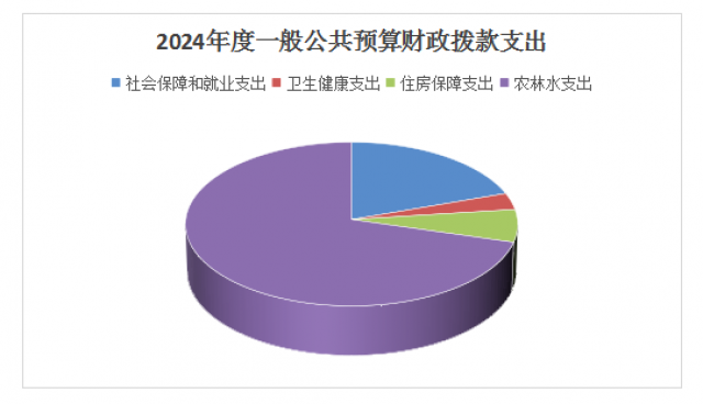 2024年度一般公共预算财政拨款支出145.76万元,主要用于以下方面:社会保障和就业支出28.75万元,占19.72%;卫生健康支出4.79万元,占3.29%;住房保障支出9.36万元,占6.42%;农林水支出102.86万元,占70.57%。