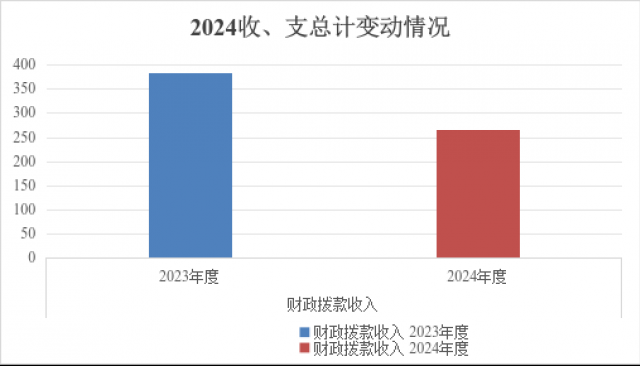 2024年度财政拨款收入、支出总计均为265.67万元。与2023年度相比,财政拨款收入总计、支出总计各减少118.27万元,下降30.8%。主要变动原因是政府性基金预算财政拨款、项目支出减少。