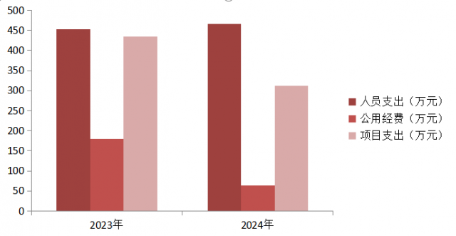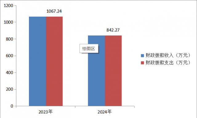 2024年度财政拨款收入、支出总计均为842.27万元。与2023年度相比,财政拨款收入总计、支出总计各减少224.97万元,下降21.08%。主要变动原因是2024年人员支出较上年增加13.99万元,公用经费支出较上年减少117.25万元,项目支出较上年减少121.71万元。