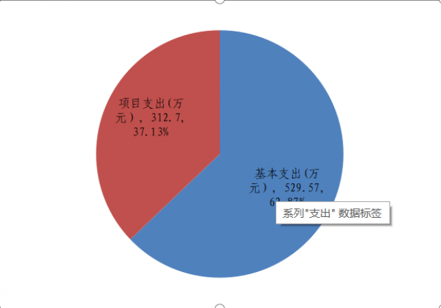 2024年度本年支出合计842.27万元,其中:基本支出529.57万元,占62.87%;项目支出312.7万元,占37.12%。