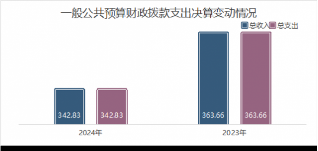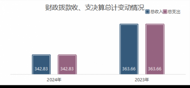 2024年度财政拨款收、支总计均为342.83万元。与2023年度相比,财政拨款收、支总计各减少20.83万元,下降5.73%。主要变动原因是2024年人员减少。