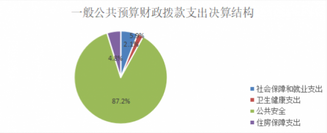 2024年度一般公共预算财政拨款支出342.83万元,主要用于以下方面:公共安全支出299.03万元,占87.2%;社会保障和就业支出20.36万元,占5.94%;卫生健康支出7.1万元,占2.08%;住房保障支出16.30万元,占4.75%。