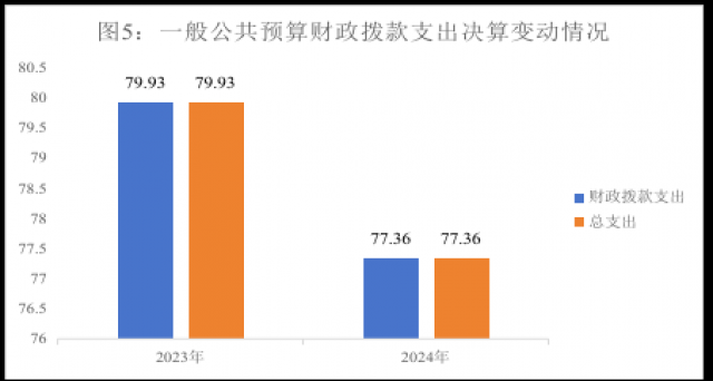 2024年度一般公共预算财政拨款支出77.36万元,占本年支出合计的100%。与2023年度相比,一般公共预算财政拨款支出减少2.57万元,下降3%。主要变动原因是人员减少。